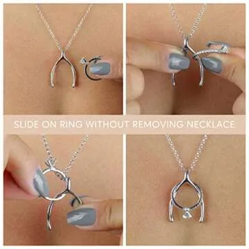 Emily C Ring Holder Necklace - Stainless Steel Ring Keeper Necklaces - Women & Men Wedding Ring Holder Necklace - Cute Necklace Jewelry for Women, Wife, Nurse, Doctor - Wishbone Ring Necklace Holder