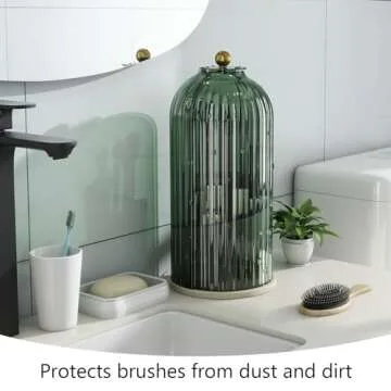 Emljkvp Makeup Brush Holder with Dustproof Cover 360 Rotating Makeup Brush Organizer for Vanity Bathroom, Green