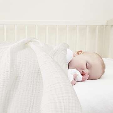 In a market flooded with baby blankets, the EMME Muslin Baby Blanket stands out due to its exceptional quality. Unlike many alternatives, our blanket is made with a unique 6-layer design that ensures breathability without compromising warmth. Others may use cheaper materials that lead to skin irritations; however, our 100% cotton fabric prioritizes your baby's comfort and care. The generous size makes it practical for use as your baby grows, while its stylish solid colors cater to all tastes.