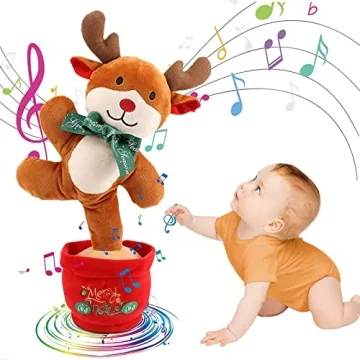 Show moreDiscover the enchanting Emoin Singing Reindeer Dancing Cactus, a delightful toy designed to bring joy and music to children aged 6 to 12 months and beyond. This interactive marvel stands out with its ability to sing, dance, and even mimic sounds, providing endless entertainment and learning opportunities. Adorned with captivating lights that twinkle in harmony with lively melodies, this reindeer will become the centerpiece of playtime for your little ones. Crafted with soft plush fabric, it is gentle on tiny hands, ensuring a comforting cuddle buddy during both play and nap times.