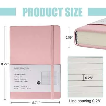 Show moreIntroducing the EMOMAS Lined Journal Notebook, a beautifully crafted journal that is as practical as it is stylish. Measuring 5.7 in by 8 in, this medium-sized notebook is the perfect companion for your thoughts, sketches, and ideas. Encased in a durable and water-resistant vegan leather cover, it ensures that the pages inside are protected for years, providing you with a comfortable writing surface wherever you go. With its sleek design featuring rounded corners, 160 pages made from 100 gsm acid-free paper, a ribbon bookmark, and an elastic closure band, this notebook is designed for ultimate convenience and durability. You'll appreciate the thoughtful details that make writing a joy rather than a chore.