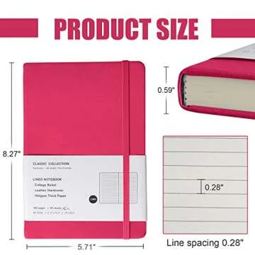 Show moreIntroducing the EMOMAS Lined Journal Notebook in a stunning rose red that is not just a writing accessory but a lifelong companion for your thoughts and inspirations. Measuring at a perfectly portable size of 5.7 inches by 8 inches, this journal boasts a durable and water-resistant vegan leather cover that does more than just look elegant—it provides a comfortable writing surface that protects your notes for years to come. With rounded corners to prevent wear and tear, this notebook is designed for both functionality and style, ensuring that every page is accessible, whether you’re jotting down thoughts at home or capturing ideas on-the-go.