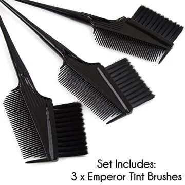 Emperor Hair Dye Brushes - 3 Angled Tint Brushes with Integrated Combs - Hair Dye Brush Applicator - Hair Root Touch Up Brush - Color Brushes for Hair Salon (Black)