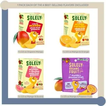 Empire Mercante Healthy Gummies Set with Healthy Recipe Book fit with Solely Fruit Gummies 4pck Variety (Mango, Mango and Orange, Mango & Guava, Mango & Passion Fruit) No Added Sugar Vegan Organic Dried Fruit Snacks