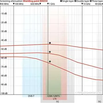 Show moreThe EMR Shielding Solutions YSHIELD MAX54 EMF Shielding Paint is a revolutionary product designed to protect your living environment from harmful electromagnetic radiation. This high-performance shielding paint boasts an impressive attenuation range of 43dB to 83dB, allowing you to customize your shield based on the required frequency range and number of layers applied. Its excellent adhesion properties ensure compatibility with a wide range of substrates, whether interior or exterior, making it versatile for various applications. This product not only provides robust protection but also frees you from the worries of EMF radiation exposure from nearby sources such as cell towers and Wi-Fi antennas.