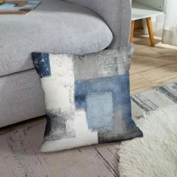 Emvency Decorative Throw Pillow Covers Cases Gray Contemporary Blue and Grey Abstract Painting Interior Lines Modern Office Rectangle Squares 16x16 Inches Pillowcases Case Cover Cushion Two Sided
