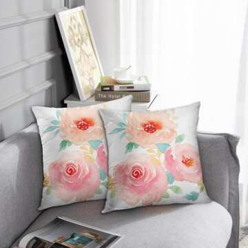 Emvency Set of 2 Throw Pillow Cover Flower Girly Peonies Summer Watercolor Pastel Floral Mint Decorative Pillow Case Home Decor Square 20 x 20 Inch Pillowcase