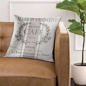 Emvency Throw Pillow Cover Modern Vintage French Cafe Decorative Pillow Case Paris Home Decor Square 18 x 18 Inch Cushion Pillowcase