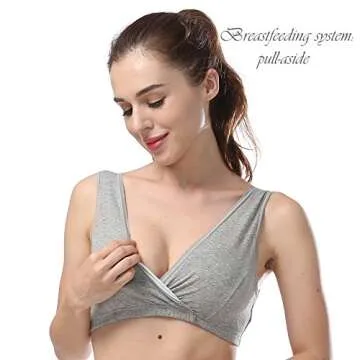 EMY Nursing Bra Maternity Bra 4 Pack Wrap Sleep Bra For Maternity To Nursing Seamless Cotton,2 Grey, 1 Green, 1 White,US L (Asian tag LL)