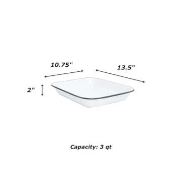 Enamelware Large Open Roaster, 13.5 x 10.75 inches, Vintage White/Blue