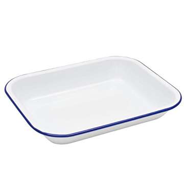 Enamelware Small Open Roaster, 11.5 x 9.25 inches, Vintage White/Blue (Single)