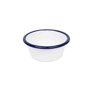 Enamelware Vintage Style Small Ramekin - Stylish & Versatile, 2 Oz, Blue Rim