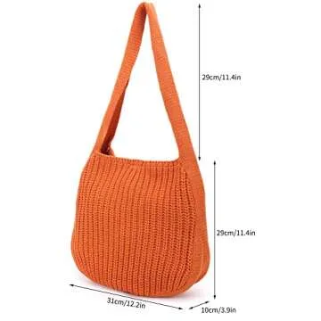 Show more Introducing the ENBEI Women’s Handcrafted Crochet Tote Bag, your new go-to accessory for every occasion! This chic yet minimalist knit shoulder bag is designed to complement any outfit effortlessly. With its stunning tangerine hue and timeless crochet pattern, it stands out while remaining versatile enough for casual outings or as a stylish beach companion. Measuring 23 inches by 14 inches with a comfortable 12-inch shoulder strap, this bag is ideal for carrying all your essentials, from beach towels to daily necessities.