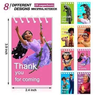 The enchanting atmosphere of an Encanto party is further enhanced by these delightful mini notepads. Perfect for birthday celebrations, their lively designs and practical use ensure that they will be loved by all attendees, creating a joyful environment that keeps the magic of Encanto alive long after the last cake slice has been served.