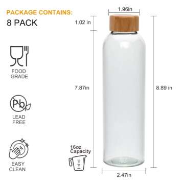 Encheng 16oz Glass Bottle with Lid,Glass Beverage Bottles with Bamboo Lids Set of 8,Reusable Drinking Bottles with Leak proof Cap 500ml,Glass Bottles for Juicing,to Go Travel Bottles for Drink,Sauce
