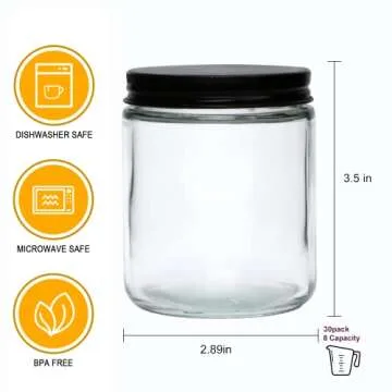 Encheng 8 OZ Glass Jars with Airtight Lids for Food & DIY Projects - 30 Pack