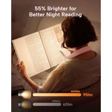 The enclize LED Neck Reading Light is the perfect companion for avid readers, crafters, and anyone who loves to indulge in nighttime activities without disturbing those around them. This innovative book light features three adjustable brightness levels allowing you to tailor your illumination between 10% to 100%, depending on your task and comfort needs. Enhanced with two independent LED heads, you can easily switch to your desired brightness at the touch of a button, ensuring...