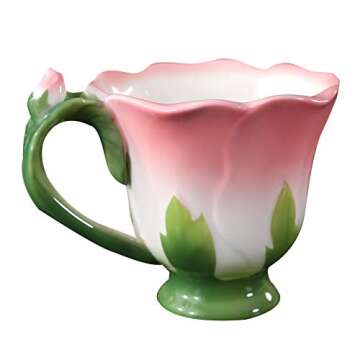 ENCOFT Hand Crafted Collection Porcelain Coffee Tea Cup Sets with Saucer and Spoon Rose Shape Design (Pink)