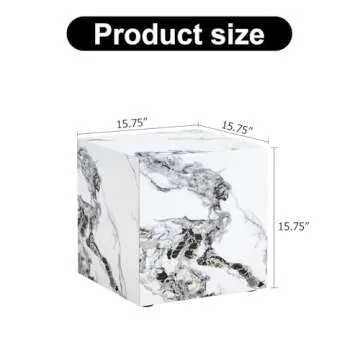 End Table, White Marble Side Table, Beside Table Couch Coffee Table, Cube Accent Living Room Sofa Table, Bedside Table Nightstand for Small Spaces, Bedroom (Modern, Marble 01)