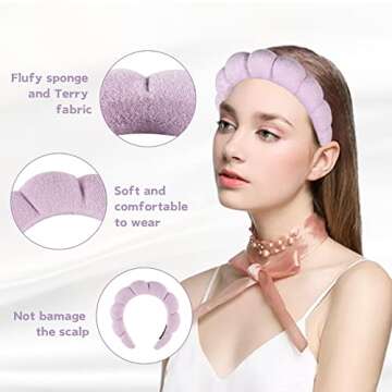 Show moreIntroducing the ENDLIS Spa Headband and Microfiber Wrist Towel set, a chic and functional addition to your beauty routine. This lovely set includes three gorgeous headbands in a delightful purple color, designed to keep your hair neatly away from your face during washing, skincare, and showering. Made with ultra-soft microfiber material, these headbands not only provide comfort but also help to absorb moisture, making your skincare process more efficient. The adorable bow design adds a touch of elegance, ensuring you feel fabulous while pampering yourself.