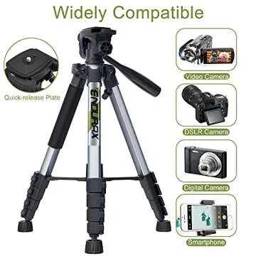 Endurax 66 Tripod for Camera and Phone Camera Tripod Stand with Quick Release Plate Compatible with iPhone Nikon Canon DSLR Heavy Duty and Sturdy Grey