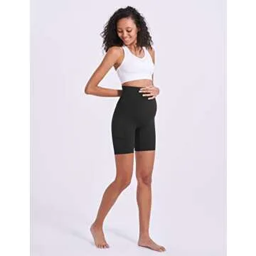 Enerful Women's Maternity Biker Shorts Over The Belly Buttery Soft Workout Running Yoga Active Pants with Pockets 8" Black Small