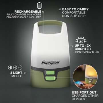 ... Show moreIntroducing the Energizer VISION LED Camping Lantern, the ultimate companion for your outdoor adventures and emergency situations. This bright rechargeable lantern redefines what a portable lighting solution can be, delivering exceptional performance tailored to your needs. Whether you are camping in the woods, hosting a backyard party, or preparing for an unexpected power outage, this lantern ensures you stay illuminated and connected with its remarkable features.