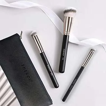 Show more Unleash your beauty potential with the ENERGY Pro Makeup Brushes Set, a collection that redefines makeup application. This thoughtful set includes three essential brushes designed primarily for foundation and concealing needs, all nestled in a chic PU cosmetic pouch. The star of the show is the Kabuki Foundation Brush 170, boasting soft yet dense bristles that allow for an even application of various makeup products, from powders to liquids. Complementing this tool are the Concealer Brush Under Eye 270 and the Precision Under Eye Concealer Brush 270MINI, expertly crafted for precision coverage in those challenging areas, like dark circles and blemishes.