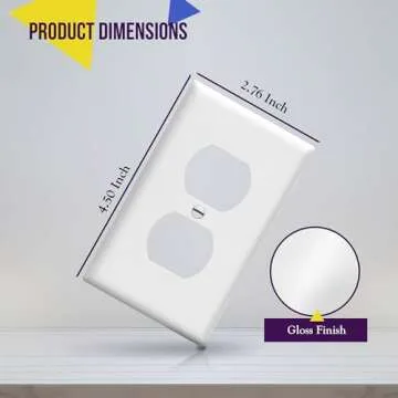 Show more The ENERLITES Duplex Receptacle Outlet Wall Plate is the perfect blend of functionality and style, designed for those who appreciate durability and aesthetic appeal in their home decor. Made from premium polycarbonate thermoplastic material, this wall plate offers remarkable resilience to withstand hard impacts and heavy force, making it an ideal choice for high-traffic areas like kitchens and bathrooms. With temperatures resistance exceeding 100 degrees, these plates will not fade or discolor over time, ensuring they maintain their elegant appearance through years of use.