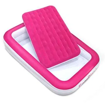 Show more Introducing the EnerPlex Inflatable Travel Bed with High-Speed Pump, a revolutionary solution for parents seeking comfort and convenience for their little ones on the go! Tailored specifically for toddlers, this portable air mattress ensures a restful night’s sleep anywhere—from hotel rooms to camping sites. Made from high-quality, durable materials, this inflatable bed is designed with safety and ease-of-use in mind, allowing your child to have the homey comfort of a bed wherever they may be. The lovely pink finish adds a playful touch, and the built-in safety bumpers provide extra security, ensuring a cozy sleep experience for your kids.