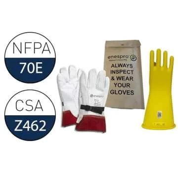Enespro Class 2 Yellow Rubber Voltage Insulating Glove Kit with Leather Protectors, Max. Use Voltage 17,000V AC/ 25,500V DC (KITGC2Y10)