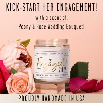 Show moreCelebrate the joy of love and commitment with our exquisite Engagement Gift Candle, thoughtfully crafted for brides-to-be! This delightful candle, etched with the words 'Engaged 2025' in stunning gold foil, is more than just a home fragrance; it’s a token of everlasting love that will set the perfect romantic atmosphere as she plans her special day. Infused with the enchanting scents of Peony and Red Roses, this candle evokes the essence of her bridal bouquet, enveloping her space in sweet, floral nostalgia every time it's burned. Each candle is hand-poured with care in the USA, ensuring a high-quality product that not only pleases the senses but also uplifts spirits.
