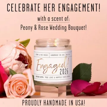 Engagement Gift, 'Engaged 2026' Candle with Peony & Rose Scent | 50Hr Burn, USA Made