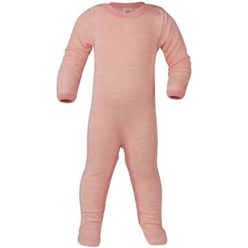 ENGEL 70% Organic Wool 30% Silk Baby Footed Pajamas Sleep Overall (86/92 (12-24 mo), Salmon/Natural)