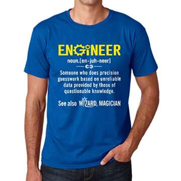 Show moreIntroducing the Engineer Meaning, Funny Definition T-Shirt, a delightful apparel crafted for science geeks, tech enthusiasts, and engineering professionals alike. This vibrant royal blue tee showcases a humorous definition of an engineer that not only evokes laughter but also invites nods of approval from fellow STEM lovers. Made from high-quality, ultra-soft cotton, this shirt promises both comfort and durability, making it the ideal choice for daily wear—whether you're in the lab, enjoying a casual day out, or attending a tech conference. It's more than just a t-shirt; it's a bold statement of your engineering pride!