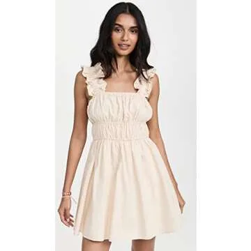 Elegance meets playful charm in the English Factory Women's Ruffled Detail Mini Dress. Crafted from a premium mid-weight, non-stretch poplin fabric, this dress is designed to provide just the right amount of comfort and style. The dress features a beautifully shirred elastic bodice that perfectly hugs your curves while allowing for easy movement. The ruffle shoulder straps add a touch of whimsy, making it a standout piece suitable for both casual outings and special occasions. With a full...