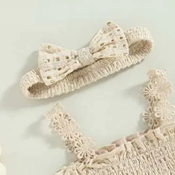 Engofs Boho Baby Girl Clothes Newborn Infant Sleeveless Lace Romper with Headband Summer Outfit Light Khaki 0-3 Months
