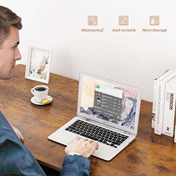Engriy Writing Computer Desk 47", Home Office Study Desk with 2 Storage Shelves on Left or Right Side, Industrial Simple Style Wood Table Metal Frame for PC Laptop Notebook