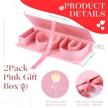 Show moreExperience the art of gift-giving with the exquisite Engrowtic 2 Pack "I Love You" for Flowers Empty Mother's Day Boxes. Designed to impress, these charming boxes seamlessly blend quality craftsmanship with elegance, ensuring that your gifts not only look beautiful but are also protected during presentation. Constructed from sturdy quality paper, these boxes are not easily damaged, making them reliable for any occasion. The striking solid pink color in combination with a luxurious gilded rose pattern creates a stunning visual contrast that enhances the display of your cherished gifts.