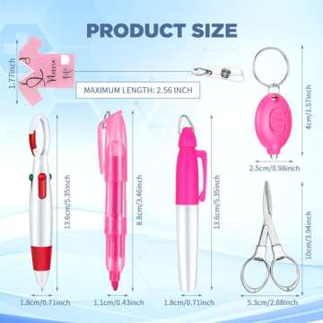 Engrowtic 6 Pcs Nurse Badge Accessories Include Permanent Marker Pen, Highlighter, Retractable Ball Pen, Badge Clip Retractable, Foldable Scissors, LED Flashlight Keychain for Nurses Week(Pink)