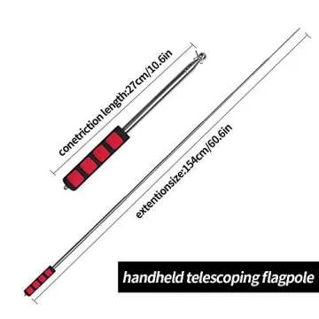 Show more Introducing the ultimate solution for anyone looking to wave their colors high and proud—our innovative telescoping flagpoles! Crafted from stainless steel for durability, these poles are designed to withstand the rigors of outdoor use while remaining lightweight and easy to carry. Each set comes with four pieces in different vibrant colors and eight clips, giving you flexibility and style. With a length that retracts to 10.5 inches and extends up to 63 inches, this flagpole is perfect for any situation, no matter how big or small.