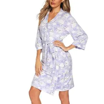 ENJOYNIGHT Women's Robes Set Sexy V-Neck 2 Pieces Lingerie Nightgown with Robes Pajama Set Lace Cami Sleepwear(Medium,Clouds)