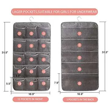 Enlarged Closet Hanging Bra Organizer with Rotating Metal Hanger, Dual Sided Wall Shelf Wardrobe Mesh Pockets Hanging Storage Bag for Bra Socks Underwear Underpants