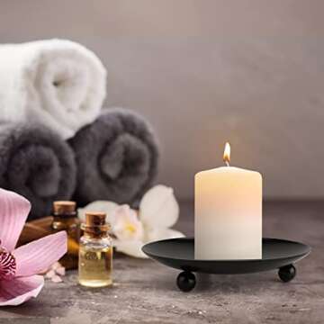 Show moreIntroducing the ENMY Pillar Candle Plates 4Pcs/Set, masterfully crafted to enhance your home decor while serving multiple practical purposes. Made from high-quality iron, these candle trays boast exquisite workmanship, ensuring that each plate is stable, safe, and durable for long-lasting use. With a diameter of 4.33 inches, they are perfectly sized to hold pillar candles securely, providing a beautiful setting without the worry of wax spills on your surfaces.