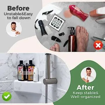 ENONCI RV Accessories for Inside Clear, Camper Must Haves, Shower Corner Storage Bar with 2 Razor Hanger, Adjustable Acrylic for Corner Shelves Length 8-14 inches Applicable for Most RV Camper