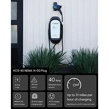 The HCS-40 not only meets high-speed charging demands but also supports versatility. Designed to accommodate diverse electric vehicles, it offers up to 31 miles of range per hour, allowing for an overnight charge that’s perfect for daily use. With additional features such as an integrated cable wrap and wall-mounted holster for cable management, the charger promotes a clutter-free environment, ensuring the cord is neatly stored when not in use. The setup process is straightforward, complete with detailed instructions for a swift installation.