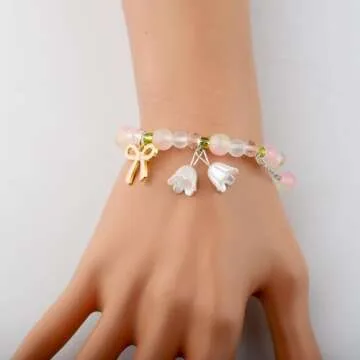ENSIANTH Coquette Pink Bow Bracelet Coquette Gift Pink Bow Gift Coquette Pearl Jewelry Pink Coquette Gift (green br)