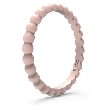 Show moreIntroducing the STACKABLE BEADED SILICONE RING by Enso, the original stackable silicone ring that started a revolution in stylish and functional accessories. This lightweight and flexible ring combines comfort with chic aesthetics, making it a perfect fit for different lifestyles. Whether you are engaging in various activities or looking for an everyday accessory, this ring adapts seamlessly to your needs. Crafted from premium silicone, it is not only visually appealing but also an excellent alternative to traditional metal rings. The Beaded Stackable design features a unique pyramid-style, ensuring your personal flair shines through while also allowing for multiple layering options. This thin wedding band, measuring 2.5mm in width and 1.8mm in thickness, is a versatile accessory for both men and women, making it an ideal pair for couples wishing to express their unity in a contemporary way.