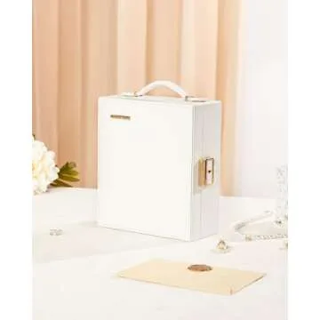 Show more Discover the perfect travel companion for your jewelry collection with this uniquely designed Travel Jewelry Box. With practicality and elegance, this jewelry box stands out from the ordinary thanks to its specialized travel design. Whether you're strolling through vibrant city streets or adventuring along country roads, you can carry your jewelry in style. Its compact size allows it to sit perfectly atop a suitcase or on your hotel vanity, ensuring convenience wherever your journey takes you.