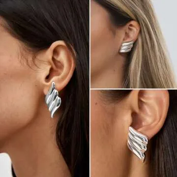 ENVYOU Geometric Rectangle Gold Stud Earrings Irregular Hammered Chunky Statement Square Earrings for Women Trendy (Silver Wings)